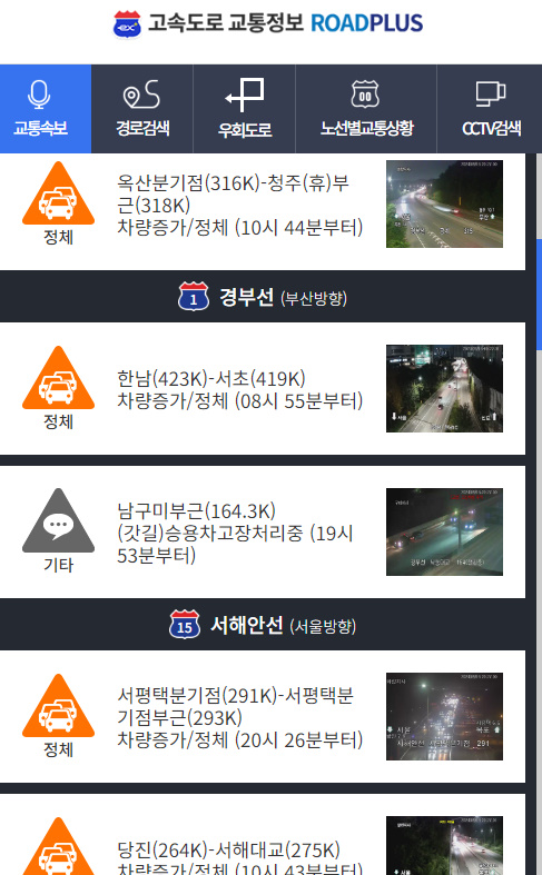 2024 추석 연휴 고속도로 국도 교통상황 실시간 바로보기